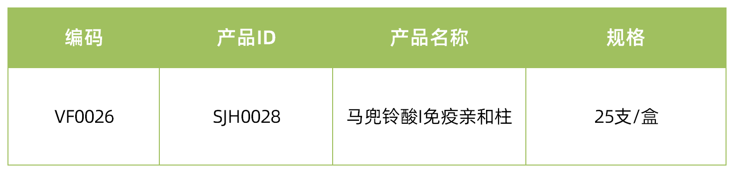 免疫亲和柱可特异性选择吸附样品液中的马兜铃酸I,从而对基质复杂的样品中的马兜铃酸I起到针对性的净化作用,过柱净化后的样品可直接用于 HPLC 或 LC-MS/MS 分析。亲和柱与 HPLC 或 LC-MS/MS 配合使用可达到快速测定的目的,以改善信噪比,可提高检测方法的准确度。